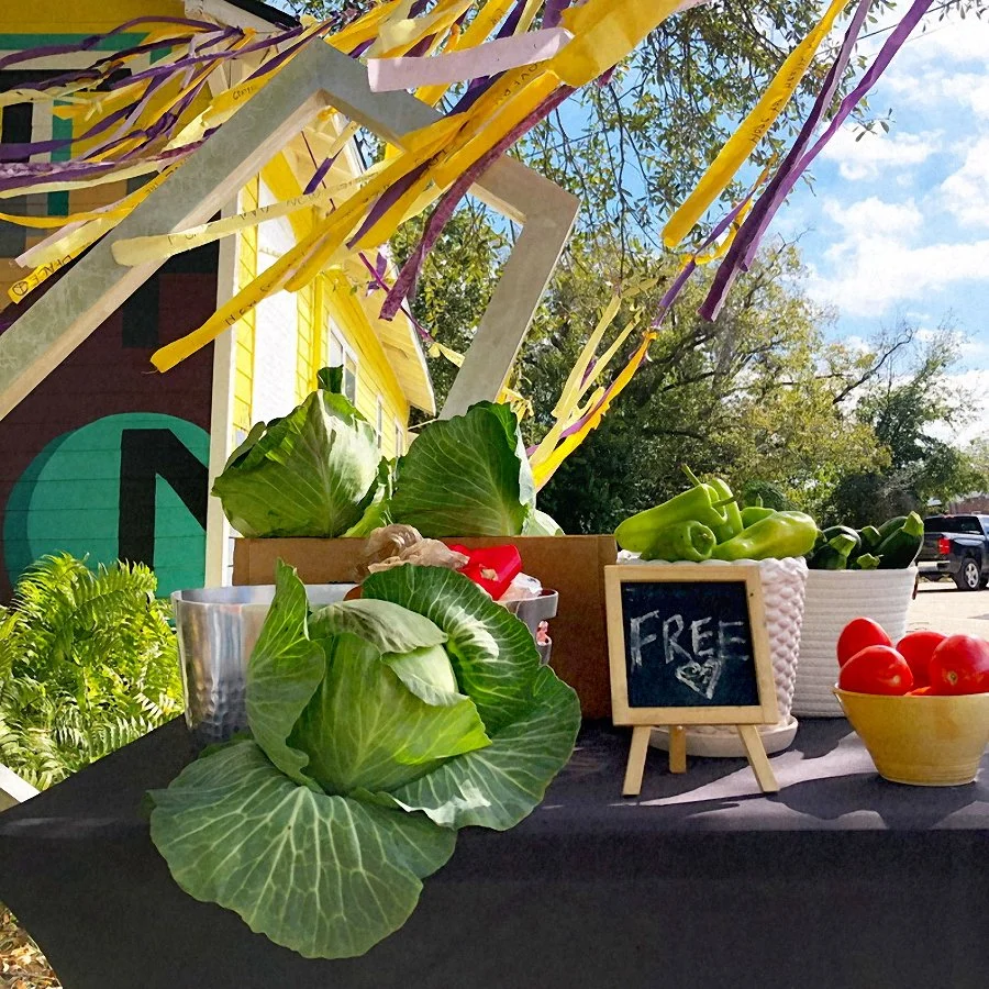 During the pandemic, we forged a partnership with the Yellow House in Jacksonville, Florida led by Hope McMath. For more than a year, we traded our labor once a week for a carload of produce to bring to communities they stand with and who were hit especially hard during the Covid. The work continues and brings fresh fruit and vegetables to their neighbors through the Community Cart. They are integrating art into this effort to fight hunger with a mural on our farm recently created by artist Nico and with other efforts ready to be born.